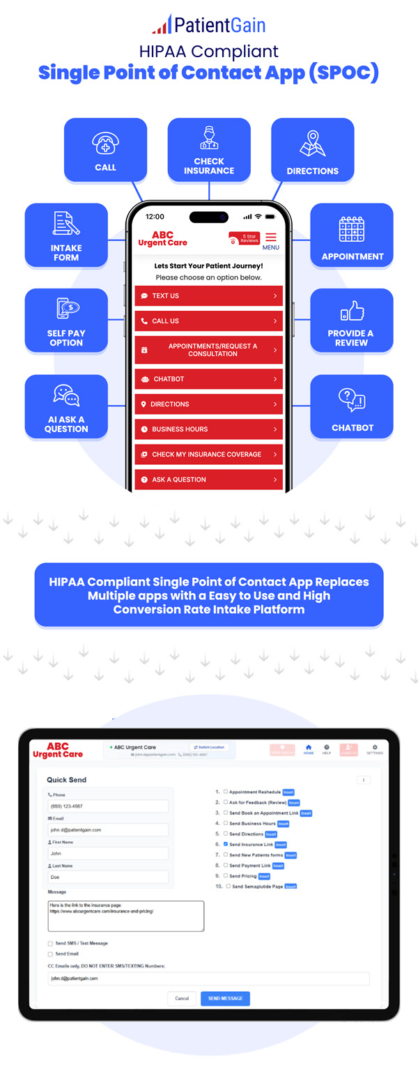 SPOC application (Single Point Of Contact) is the answer for medical and dental practices. It is a simple app that can be added to any website, and converts your existing website into an automated contact center, backed with your front desk. Hence automating over 90% of the inquiries.
